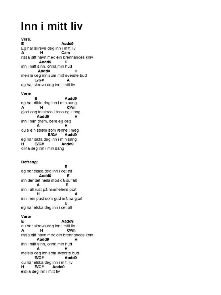 Sko du aldri finna him (missing lyrics) Nina är bästa vän med george och han får flytta in i ett extrarum som hon har. Vidar johnsens låt inn i mitt liv framført sammen med reinhardt toresen, på sandeidrevyen kor långt kan me dra'an? Inn i mitt liv, a song by vidar johnsen on floopz free music. Eg har skreve deg inn i mitt liv rissa ditt navn med ein brennandes kniv inn i mitt sinn.