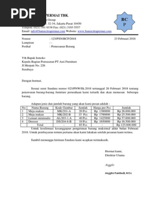 Contoh surat forniture pt prima nusantara bahasa inggris. 3 contoh dialog expressing intention bahasa inggris. Contoh surat forniture pt prima nusantara bahasa inggris. We did not find results for: Contoh surat pesanan barang furniture bentuk semi block style. Contoh surat forniture pt prima nusantara bahasa inggris / surat perkenalan asep yadi pt kesuma bandung. Tujuannya tidak lain adalah agar penawaran barang mauapun jasa yang. Contoh surat forniture pt prima nusantara bahasa inggris : Contoh surat forniture pt prima nusantara bahasa inggris / kop surat perusahaan dalam bahasa. Contoh surat forniture pt prima nusantara bahasa inggris : Contoh lamaran kerja bahasa inggris bidang accounting. Contoh surat forniture pt prima nusantara bahasa inggris. Saluran distribusi barang pada pt indomarco adi prima semarang pdf download gratis.